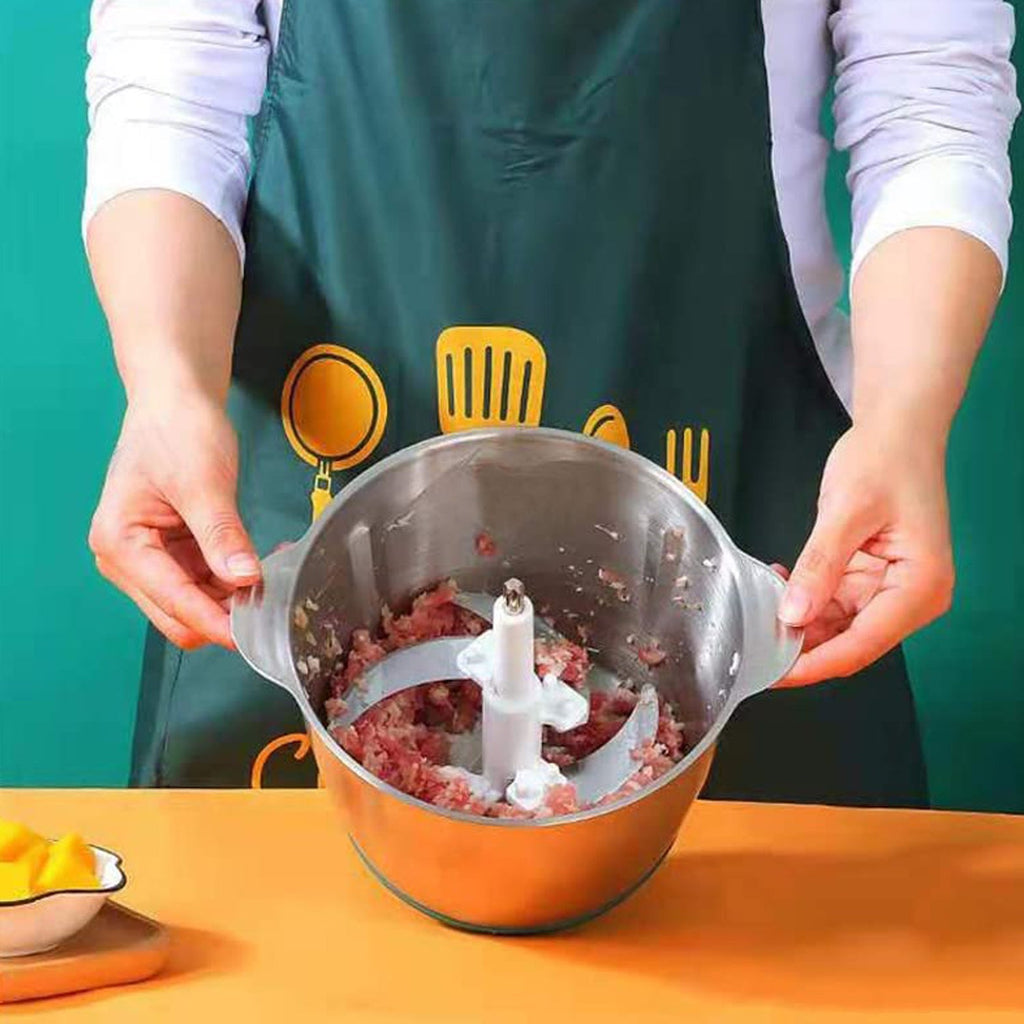 • Multifunctional Food Chopper: This food grinder is equipped with 4 stainless steel blades and 2 modes to choose from. You can chop, grind various ingredients, such as onions, meat, ham, garlic, onion, small herbs.